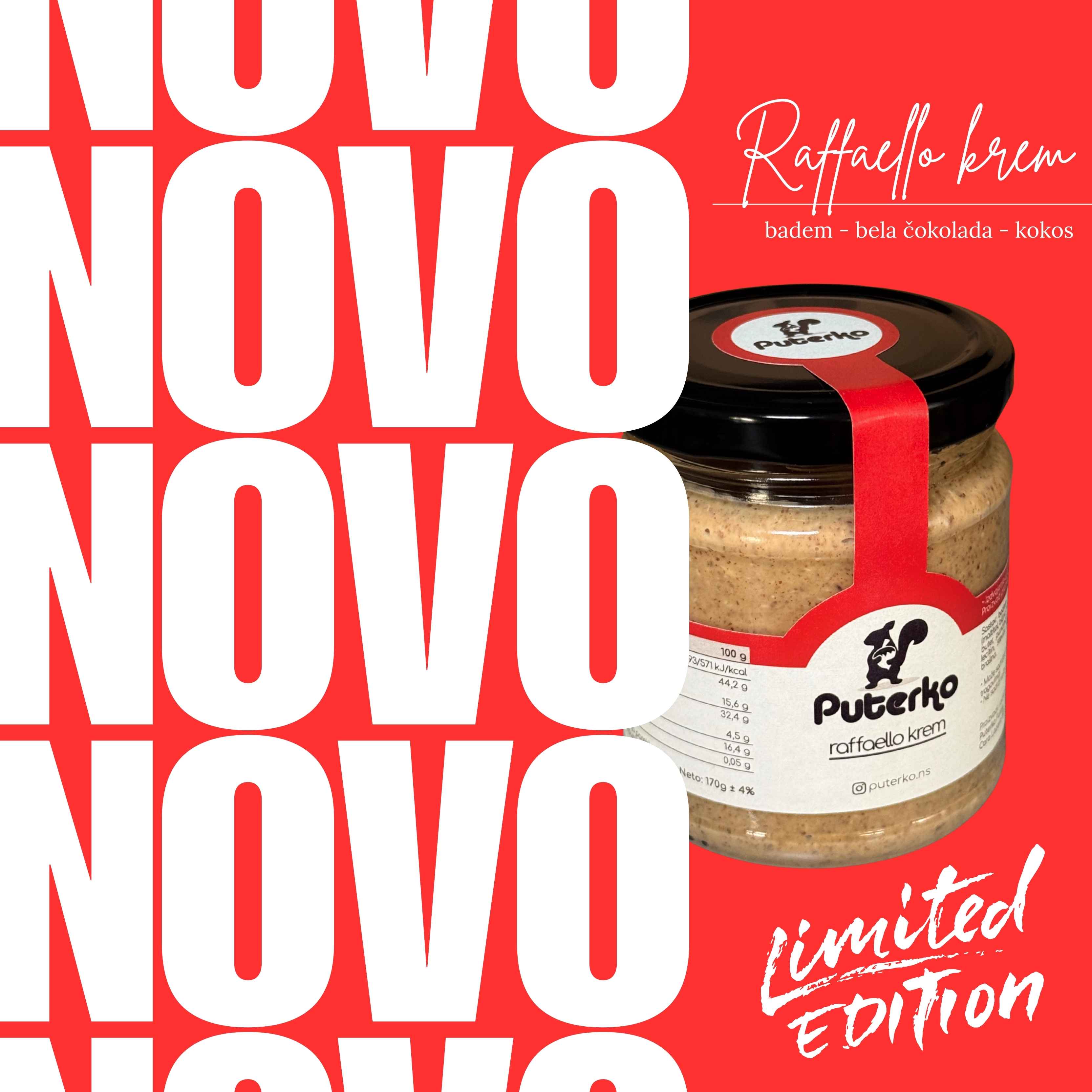 *Sastav: 60% badem, 35% bela čokolada bez šećera (maltitol, biljna mast, obrano mleko u prahu, kakao buter, punomasno mleko u prahu, inulin, sojin lecitin, steviol glikozid, arome), kokosovo brašno.